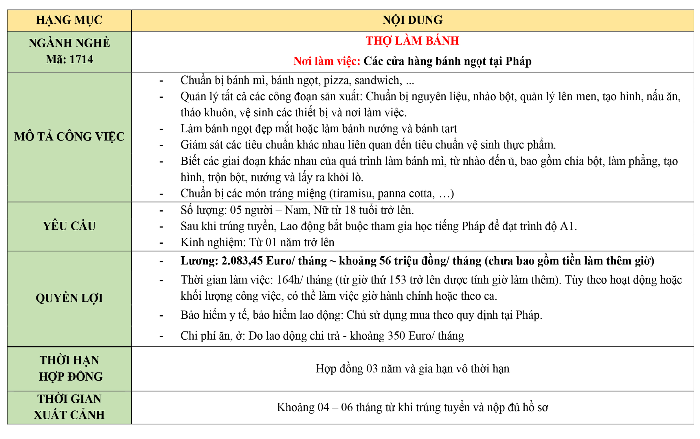 PHÁP – TUYỂN DỤNG THỢ LÀM BÁNH