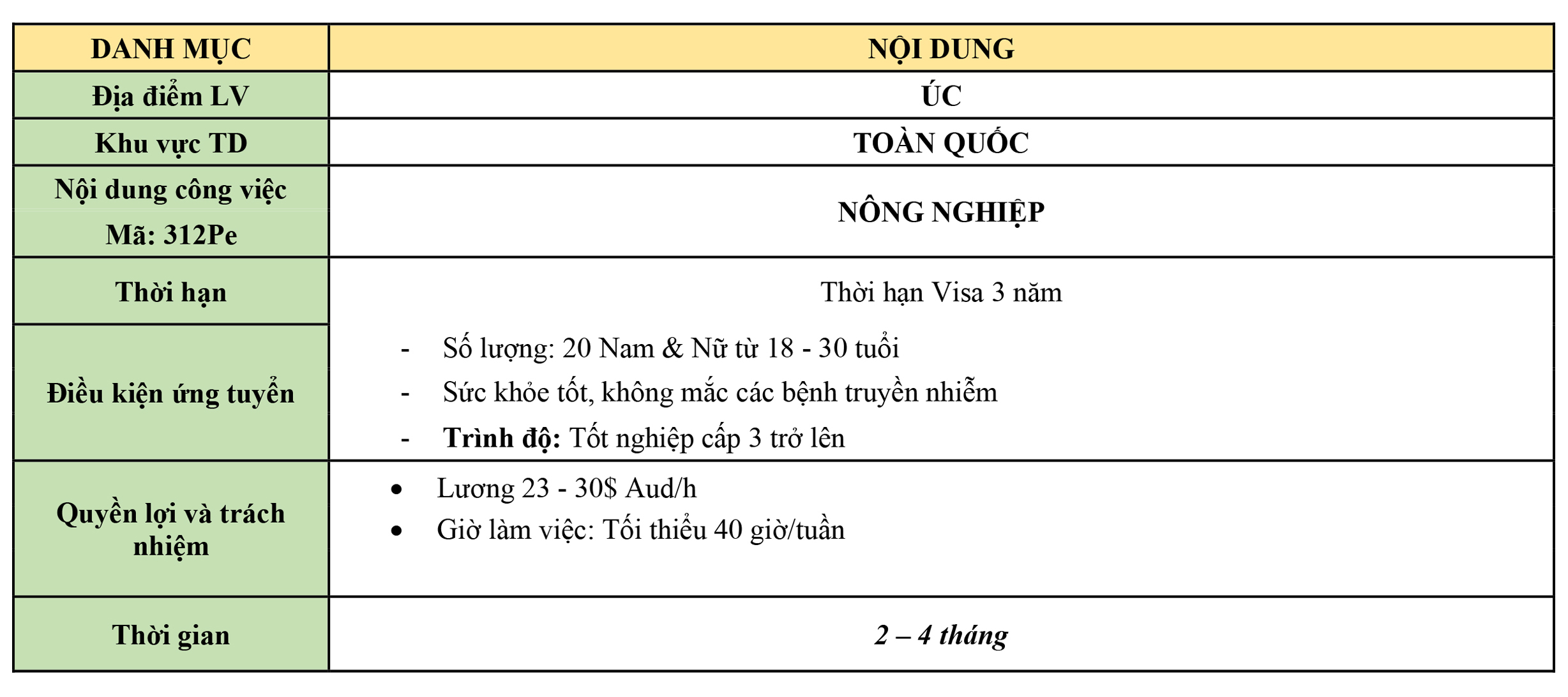 28 Th2 AUSTRALIA ÚC – TUYỂN DỤNG LAO ĐỘNG VISA 462 Đăng ký nhận bản tin và liên hệ tư vấn ĐỨC – TUYỂN DỤNG LAO ĐỘNG THỜI VỤ 8 THÁNG ÚC – VISA 482 – CHỦ BẢO LÃNH